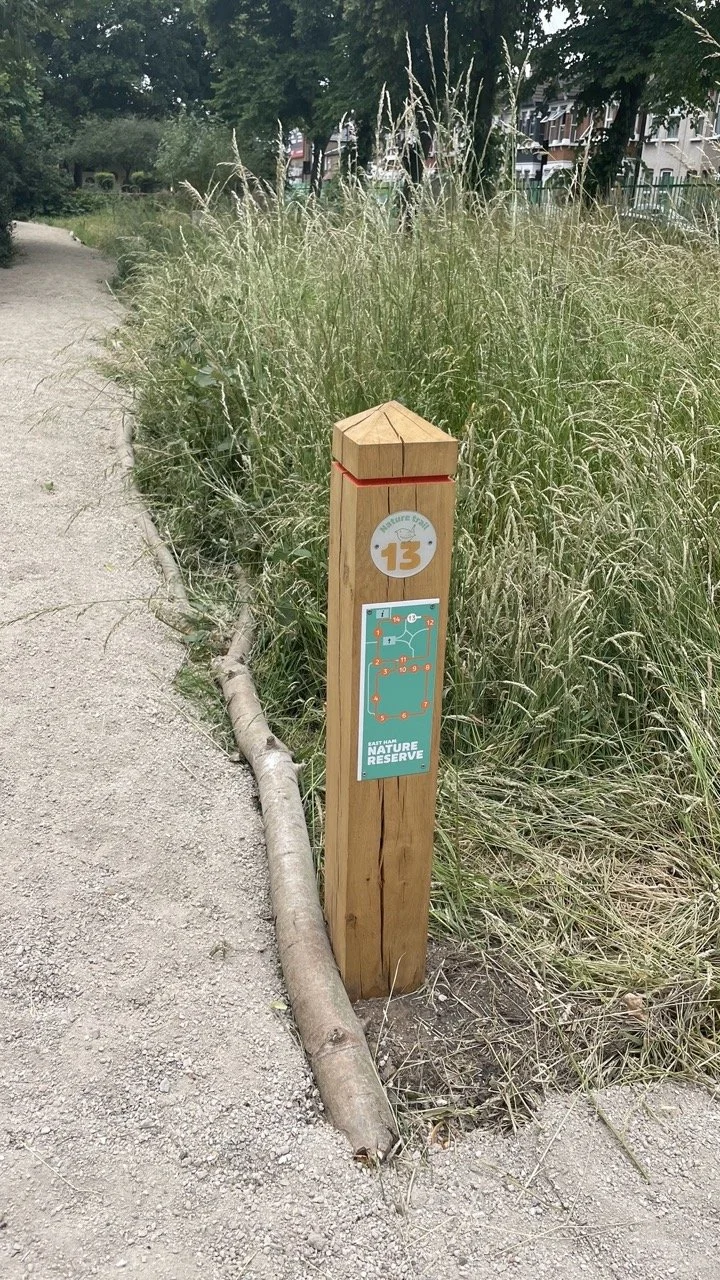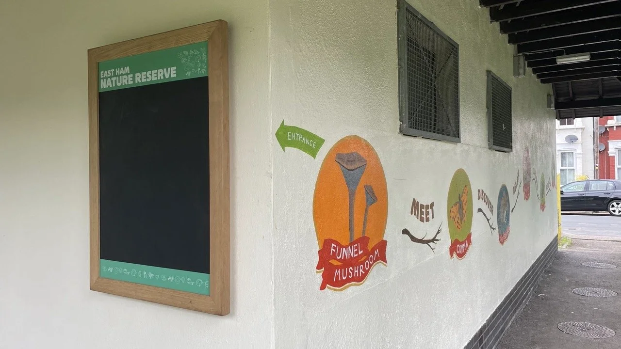 Set of interventions including wayfinding, mural, entrance gate and signage which helps unify the diverse and confusing areas in the East Ham nature reserve which can feel disorientating to walk around.